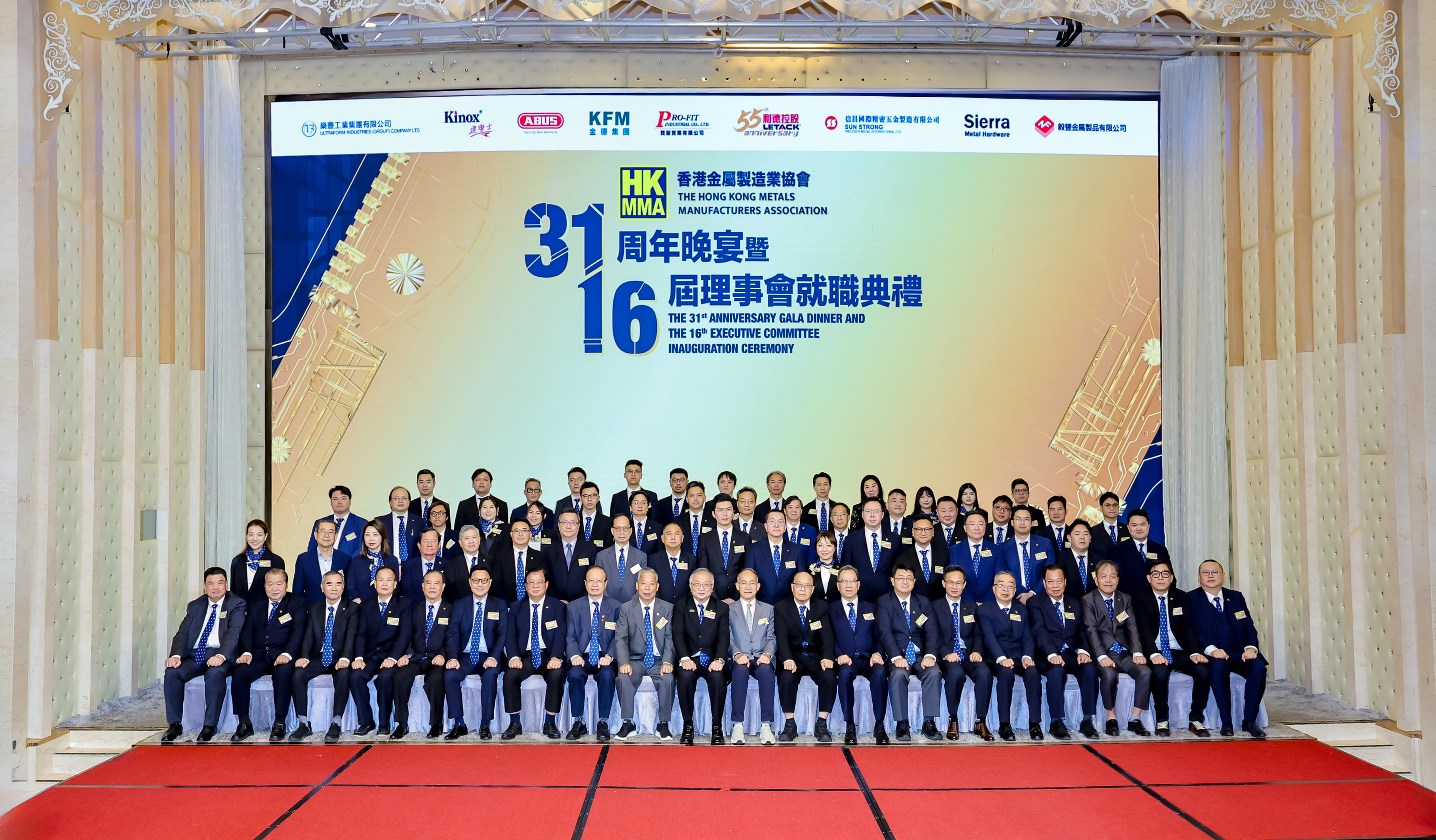 香港金屬製造業協會三十一周年晚宴暨第十六屆理事會就職典禮,已於 2025 年 12 月 8 日假九龍灣宏天廣場百樂金宴國際宴會廳圓滿舉行。當日榮幸邀請香港工業總會名譽會長郭振華先生 SBS, MH, JP 蒞臨擔任主禮嘉賓,親自為新一屆理事會成員頒發委任狀,並邀得多位商界友好蒞臨觀禮。